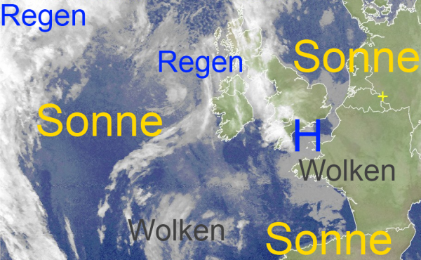 Das über Westeuropa entstandene Hoch löst die meisten Wolken über Deutschland auf und lässt wieder häufiger die Sonne strahlen. Es verlagert sich bis morgen nach Mitteleuropa. Dank der Wetterberuhigung kann sich die Hochwassersituation in Südwestdeutschland in den kommenden Tagen wieder entspannen.