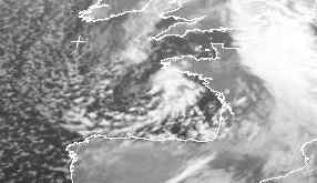 Hinter der Kaltfront des Tiefs 'Thommy', die sich von Südengland bis zum Golf von Lyon erstreckt, strömt kalte Luft aus Norden heran. Über dem, im Vergleich zur Luft, wärmeren Atlantik bildet sich eine labile Luftmasse, in der sich vermehrt Schauer entwickeln.