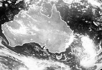 Bei Neuseeland liegt ein kleiner Tiefdruckwirbel, auf dessen Westseite kalte Luft nach Norden geströmt ist. An der australischen Südostküste kommt es zu Schauern. Sonst findet man nur über dem Westen des Kontinents Bewölkung von einzelnen Schauern und Gewittern. (Bildquelle: NERC Satellite Receiving Station, Dundee University, Scotland, http://www.sat.dundee.ac.uk/)