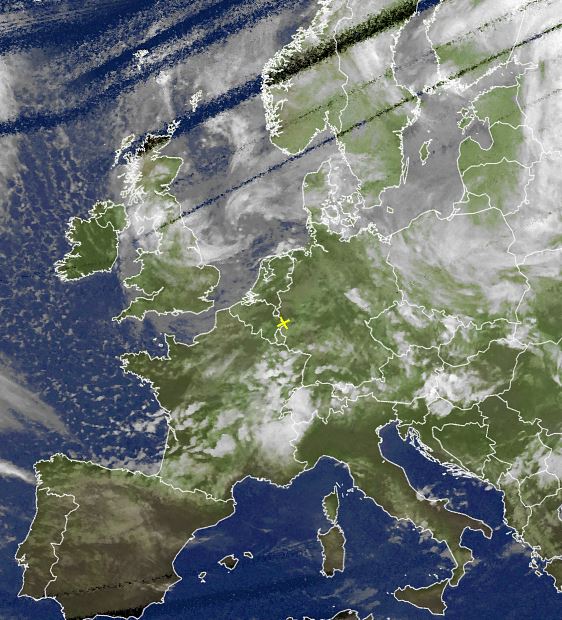Das Satellitenfoto von heute Nachmittag zeigt Europa unter meist vielen und gebietsweise dichten Wolken. Verbreitet heiter oder sonnig und dabei trocken ist es rund ums Mittelmeer, hier treten nur lokal einzelne Schauer auf. Im übrigen Europa herrscht dagegen überwiegend nasskaltes und zum Teil sehr windiges Wetter. Im Norden und Osten Europas fällt häufig Schnee.