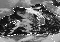 Über dem östlichen Mittelmeer sorgt der Mistral zurzeit für heftigen Wind. Ursache dafür ist tiefer Druck über dem Osten Europas und hoher Druck über Frankreich und dem Atlantik. In der Nordströmung staut sich die Luft an den Alpen und wird durch das Rhone-Tal in Richtung Mittelmeer gelenkt. In diesem Tal kann sich der Wind wie in einer Düse verstärken und so sehr hohe Geschwindigkeit erreichen. Dort, wo die kalte Luft auf das warme Mittelmeer strömt, bilden sich in einigem Abstand zum Land Quellwolken, ein sicheres Zeichen für diese Wetterlage.