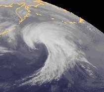 Über dem Nordpazifik, südöstlich von Kamtschatka, liegt ein kräftiges Sturmtief, das sich mit seiner Bewölkung gut im Satellitenbild abzeichnet. Seiner weit nach Süden reichenden Kaltfront folgt im Westen abrupt eine Zone mit nur wenigen Wolken. Sonst breitet sich der dichte Wolkenschirm des Frontensystems weit ostwärts aus.