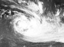 Über dem Indischen Ozean tobt sich zur Zeit der Taifun 'Hennie' aus. Er ist gestern an Mauritius vorbeigezogen und zieht heute mit Windgeschwindigkeiten von 100 km/h, in Böen bis zu 130 km/h weiter südwärts, und schwächt sich langsam ab.