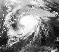 Vor Japan erkennt man heute den Taifun 'Mawar', der mit Windgeschwindigkeiten von 140, in Böen bis 170 km/h die Südküste von Honshu erreicht.