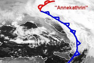 Über dem Mittelmeer hat sich das Tief 'Annekathrin' gebildet. Es zieht heute von Slowenien aus in Richtung Norden und sorgt für Regen oder Schnee vom Balkan bis nach Polen. In Süddeutschland bringt es heute und morgen zum Teil länger anhaltenden Schneefall.