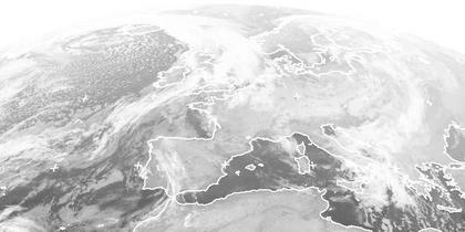 Die Ausläufer des Skandinavientiefs 'Anton' sorgen vor allem in Osteuropa noch für Wolken und Regen. Ein weiteres Tief bei Island ('Bernd') zieht mit seinen Fronten von Westen her heran, und bringt etwas Regen, aber auch milde Luftmassen zu uns. (Bildquelle: NERC Satellite Receiving Station, Dundee University, Scotland, http://www.sat.dundee.ac.uk/)