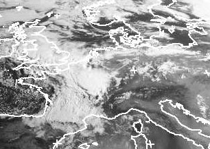 Während über Deutschland am Morgen nur einzelne Wolkenfelder liegen, die sich im Tagesverlauf weiter aufgelöst haben, sind die Wolken weiter nah Westen schon dichter. Sie gehören zu Tief 'Dietmar' über Frankreich, das heute langsam nordwärts zieht. Über Ostfrankreich ist dabei schon ein heller Wolkenschirm zu erkennen, unter dem sich Gewitterbewölkung verbirgt. Die Gewitter ziehen heute mit teils kräftigem Regen nach Deutschland. (Bildquelle: NERC Satellite Receiving Station, Dundee University, Scotland, http://www.sat.dundee.ac.uk/)