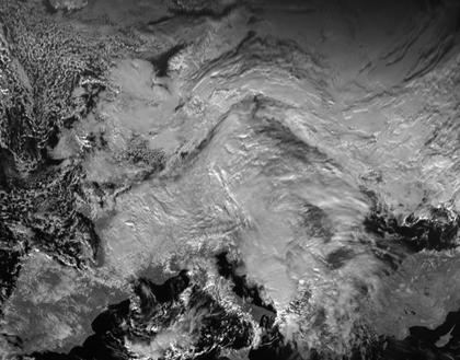 Tief 'Gundula' mit Zentrum über dem östlichen Mitteleuropa sorgt für dichte Wolken, Regen und Schnee. Im westlichen Mittelmeerraum ist es unter Hochdruckeinfluss freundlicher.