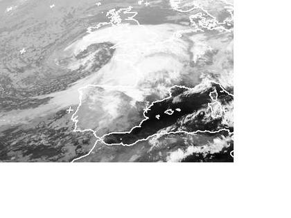 Auf dem Satellitenbild von Freitag früh ist ein dichter Wolkenwirbel gut zu erkennen. Er gehört zu dem Tief 'Mattea' mit Zentrum südwestlich von Irland. Dieses Tief bringt heute den Britischen Inseln teils kräftigen Regen. Erste Ausläufer erreichen heute Abend auch Deutschland. (Bildquelle: NERC Satellite Receiving Station, Dundee University, Scotland, http://www.sat.dundee.ac.uk/)