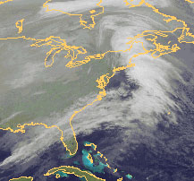 Die Ausläufer eines kräftigen Tiefs über dem Osten Kanadas ziehen vom Osten der USA auf den Atlantik. Auf ihrer Rückseite folgt jedoch wieder kalte Luft und neue Bewölkung, die bereits über dem Mittleren Westen zu erkennen ist. Sie bringt bei teils stürmischem Wind auch Schnee.