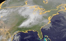 Über den USA liegt eine Luftmassengrenze zwischen sommerlich warmer Luft im Süden und kühlerer Luft im Norden. An ihr hat sich ein kräftiges Tiefdruckgebiet gebildet, das auf dem Satellitenbild über dem Mittleren Westen der USA zu erkennen ist. Seine hochreichende Bewölkung sorgt für kräftige Regenfälle und Gewitter. Zudem weht zum Teil sehr starker Wind.