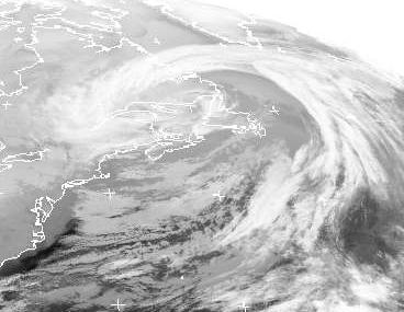 Auf dem Satellitenbild von Montag früh ist über Ostkanada die Wolkenspirale eines kräftigen Tiefs gut zu erkennen. Dieses Tief sorgt heute und in den nächsten Tagen gebietsweise noch für teils kräftigen Schneefall. (Bildquelle: NERC Satellite Receiving Station, Dundee University, Scotland, http://www.sat.dundee.ac.uk/)