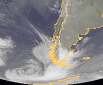 Südwestlich der Südspitze Südamerikas liegt das Zentrum eines Tiefdruckwirbels über dem Südpolarmeer. Seine Ausläufer erstrecken sich nach Norden und ziehen bei einer kräftigen Westströmung gegen den südlichen Teil der Anden, wo sie Schnee, in tieferen Lagen auch Regen, bringen.