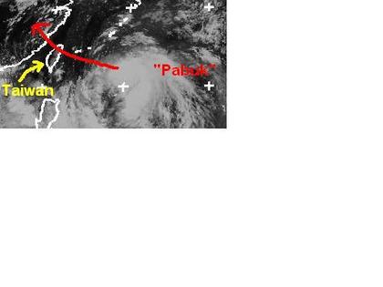 Auf dem Satellitenbild von Montag früh ist der tropische Sturm 'Pabuk' im Westpazifik gut zu erkennen. Zurzeit erreicht er mittlere Windgeschwindigkeiten von 83, in Böen 102 km/h. Berechnungen zufolge soll er sich aber noch zum Taifun verstärken, und voraussichtlich am Mittwoch über den Norden von Taiwan hinwegziehen. (Bildquelle: NERC Satellite Receiving Station, Dundee University, Scotland, http://www.sat.dundee.ac.uk/)