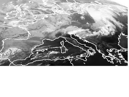 Tiefdruckeinfluss und feuchte Luftmassen sorgen in weiten Teilen Europas für dichte Wolken mit Schauern, teils auch Gewittern. Diese Wolken sind auf dem Satellitenbild von Dienstag früh gut zu erkennen. Im Mittelmeerraum bleibt es unter leichtem Hochdruckeinfluss meist freundlich und trocken. (Bildquelle: NERC Satellite Receiving Station, Dundee University, Scotland, http://www.sat.dundee.ac.uk/)