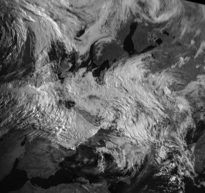 Der Kern von Tief 'Bergthora' hat sich in Bodennähe von Deutschland allmählich nach Polen verlagert. Das ändert jedoch nichts an der dichten Wolkendecke, für die das Tief weiterhin bis hin nach Ostengland sorgt. Unterdessen zieht über dem Atlantik bereits das nächste dichte Wolkengebiet neuer Tiefausläufer heran. Sie kommen jedoch heute und am Dienstag nur noch wenig weiter ostwärts voran, da sich nun über Westeuropa allmählich ein Hochdruckgebiet aufbaut.