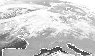 Während über dem südlichen Mitteleuropa und am nördlichen Mittelmeer kaum Wolken zu erkennen sind, lenkt weiter im Norden ein Tief bei Schottland von Westen her mit einer kräftigen Strömung viele dichte Wolken heran. Nur langsam dehnt sich der Hochdruckeinfluss weiter nach Norden aus. Am Samstag werden von Nordwesten dann aber die Regenwolken langsam nach Südosten ziehen. (Bildquelle: NERC Satellite Receiving Station, Dundee University, Scotland, http://www.sat.dundee.ac.uk/)