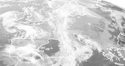 Auf dem Satellitenbild von Mittwoch früh erstreckt sich ein Wolkenband von Südskandinavien über Deutschland bis zum Mittelmeer. Es gehört zu einem Ausläufer des Tiefs 'Iastus' bei Island und bringt heute in Deutschland zeitweise Regen. Ein weiteres Tief westlich des englischen Kanals sorgt für Wolken, Regen und teils stürmischen Wind. Vom Baltikum bis Griechenland ist es unter leichtem Hochdruckeinfluss teils freundlich, teils auch trüb. (Bildquelle: NERC Satellite Receiving Station, Dundee University, Scotland, http://www.sat.dundee.ac.uk/)
