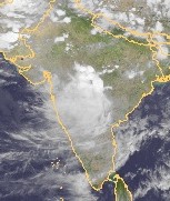 Über der Mitte Indiens sind auf dem heutigen Satellitenbild dichte Wolken zu erkennen, hierbei sind verbreitet noch monsunartige Niederschläge möglich.