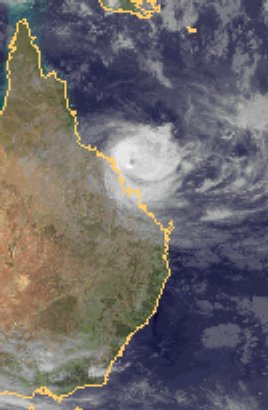 An der Küste von Queensland liegt der Zyklon 'Ului'. Er erreicht in der Nacht zum Sonntag in Böen noch Windgeschwindigkeiten bis zu 200 km/h. Zudem fällt sehr kräftiger Regen mit Überschwemmungsgefahr. Der tropische Wirbelsturm zieht nun jedoch westwärts ins Landesinnere, wo er in der Folge rasch an Intensität verliert.