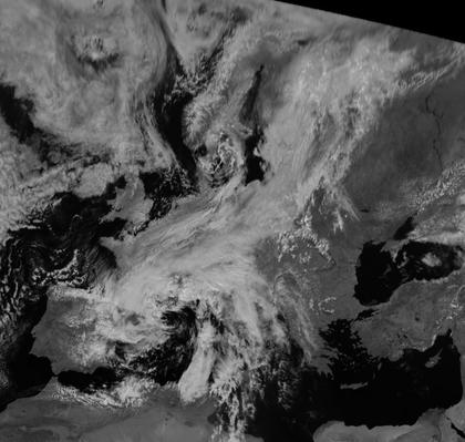 Während der Bereich des Schwarzen Meeres und der Wolgaebene unter Einfluss von Hoch 'Quinn' wolkenarm ist, ist die Westhälfte Europas unter Einfluss von Tief 'Siglinde' über dem Weißen Meer, Tief 'Tilla' über dem Baltikum und Tief 'Ulrike' über dem Golf von Genua stark bewölkt. Diese Tiefs haben eine Zyklonenfamilie gebildet.