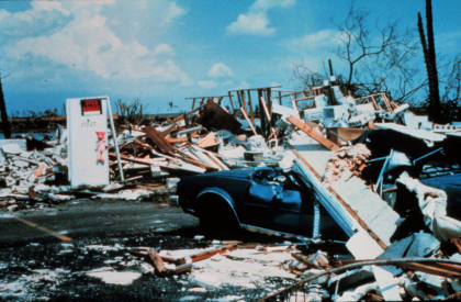 Bild: Zerstörungen durch den Hurrikan 'Andrew', der vor 'Katrina' als der Hurrikan mit dem größten Sachschaden galt. Historic NWS Collection