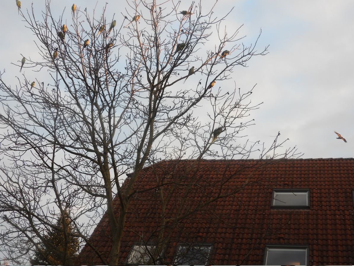 Ein Baum voller grüner Sittiche? Und das an einem Tag Ende November in Deutschland?