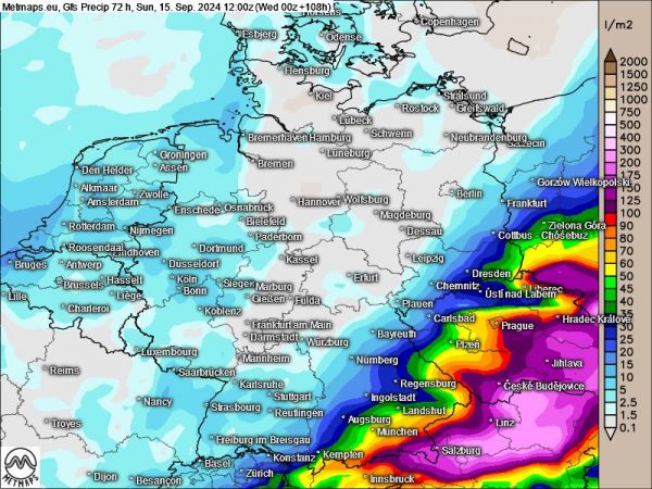 Hierzulande ist vor allem der Alpenraum von unwetterartigen Regenfällen betroffen sowie der Bayerische Wald. Die Wassermengen laufen über Elbe und Oder als Hochwasserwelle ab.