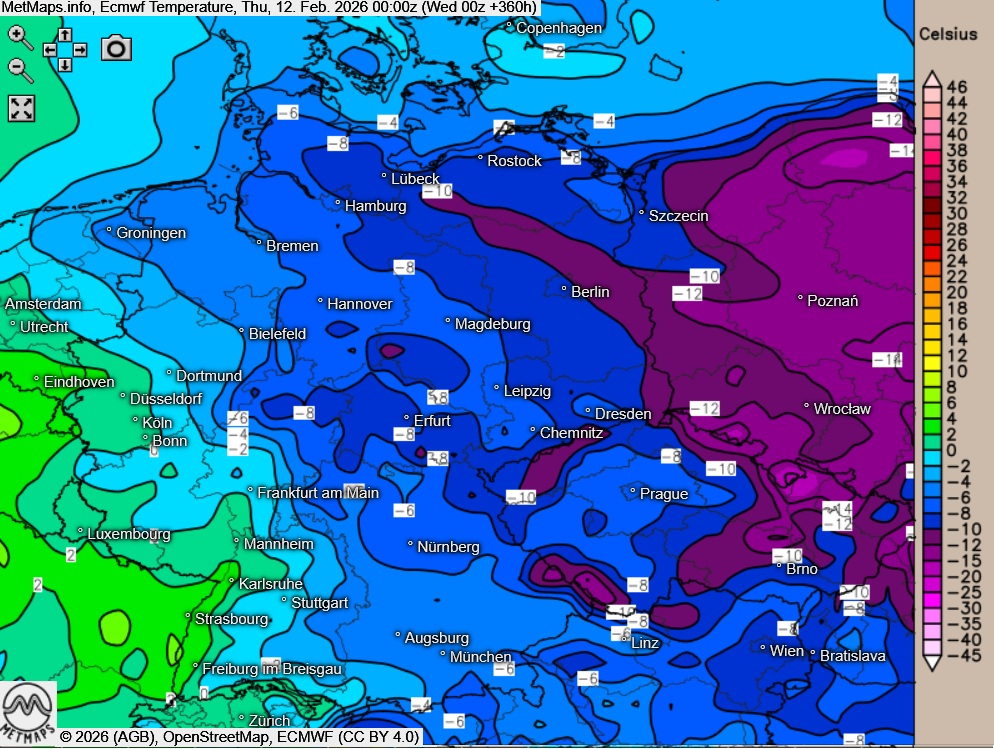 Aufgrund des weiten Zeitraums bestehen selbstverständlich noch große Unsicherheiten, sodass sich die Prognosen in den kommenden Tagen gegebenenfalls noch in Richtung milderer Witterung entwickeln können.