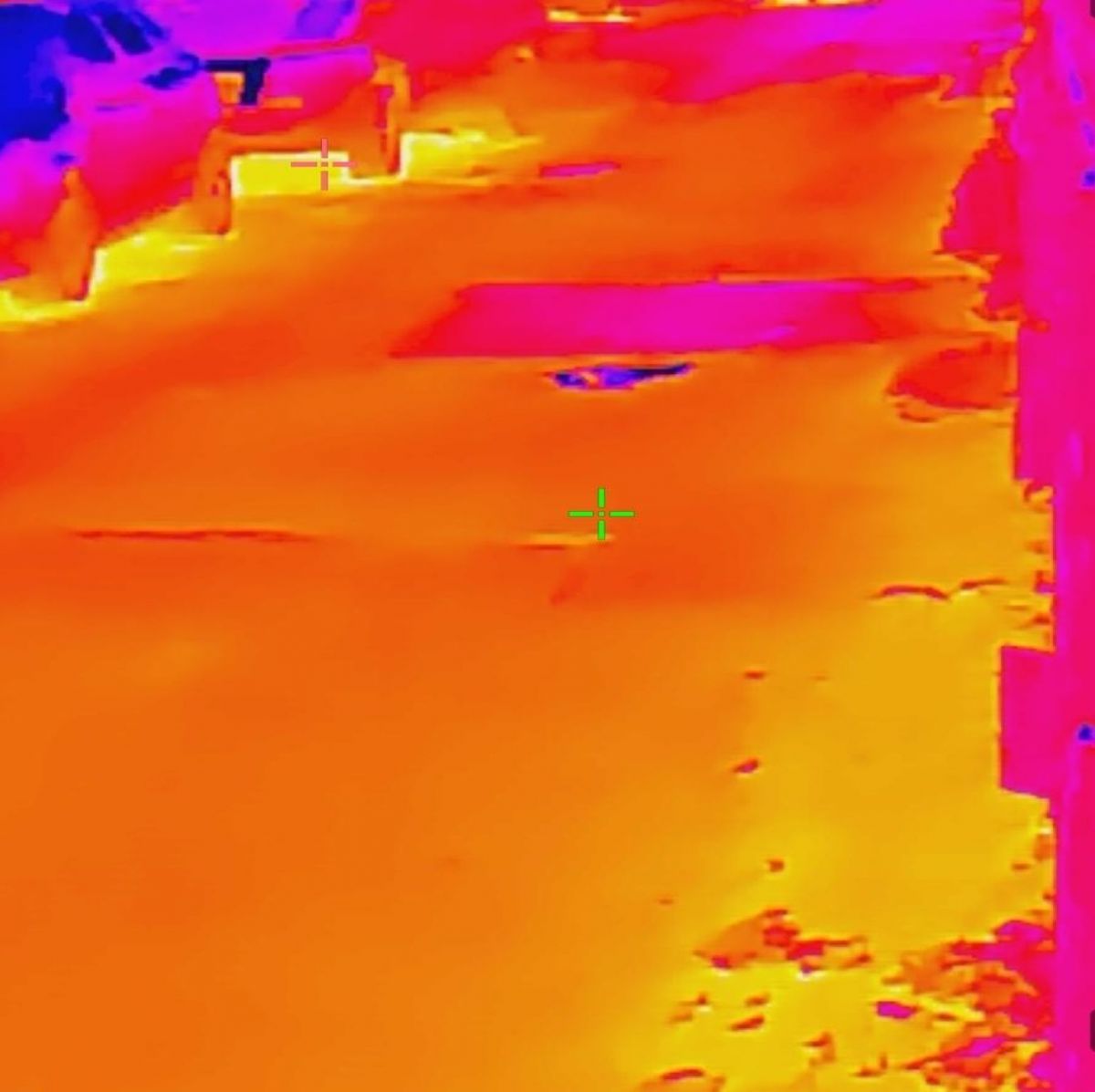 Das Infrarotbild zeigt eine Nebenstraße heute früh im Rheinland: Bei klarem Himmel erreicht die Lufttemperatur noch Werte von zwei bis drei Grad.