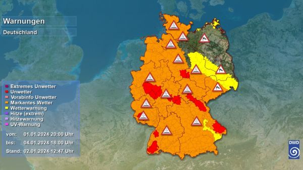 Die aktuelle Unwetterwarnlage des DWD:
