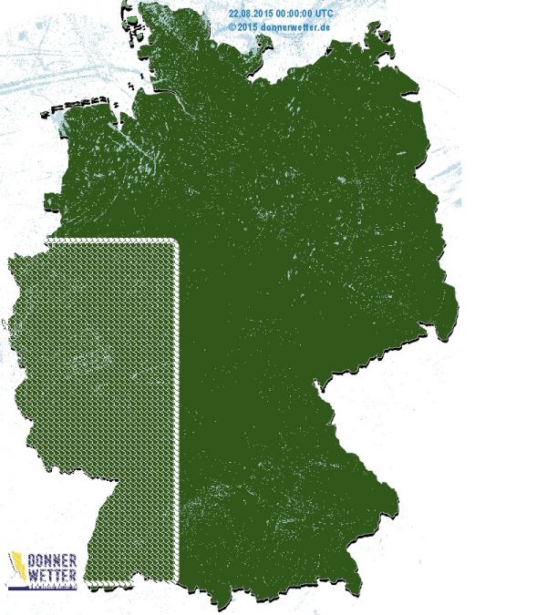 Die 24 Stunden Regenradarkarte von gestern zeigt nichts. Eingezeichnet sich die Regengebiete im Südwesten, in denen heute Nachmittag Schauer und Gewitter und heftiger Regen erwartet werden. Morgen gibt es neben Schauern auch nur Sturm im Nordwesten. Mehr dazu in unserem Deutschlandwetter.de