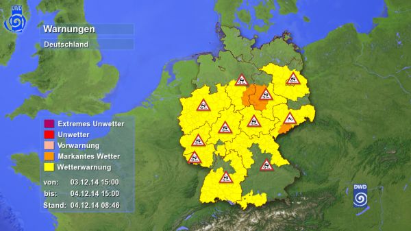 Im Osten Niedersachsens und in Sachsen-Anhalt, Sachsen und Thüringen Glatteisregen. Auch in Berlin und Brandenburg kann es sehr glatt werden. Mehr Vorhersagen in der 2 Stunden-Prognose auf Donnerwetter.de