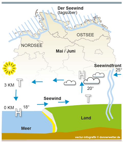 Das passiert, wenn sich im Sommerhalbjahr Landfläche schneller erhitzt als Nord- oder Ostsee.