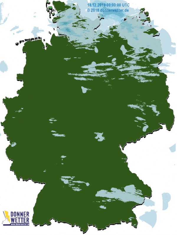 Am Donnerstag fällt gebietsweise Regen oder Sprühregen, ganz im Osten, sowie in Teilen Bayerns zunächst auch gefrierender Regen oder Schnee mit Glättegefahr. Die Niederschlagsmengen liegen zwischen 1 und 10 Liter pro Quadratmeter.