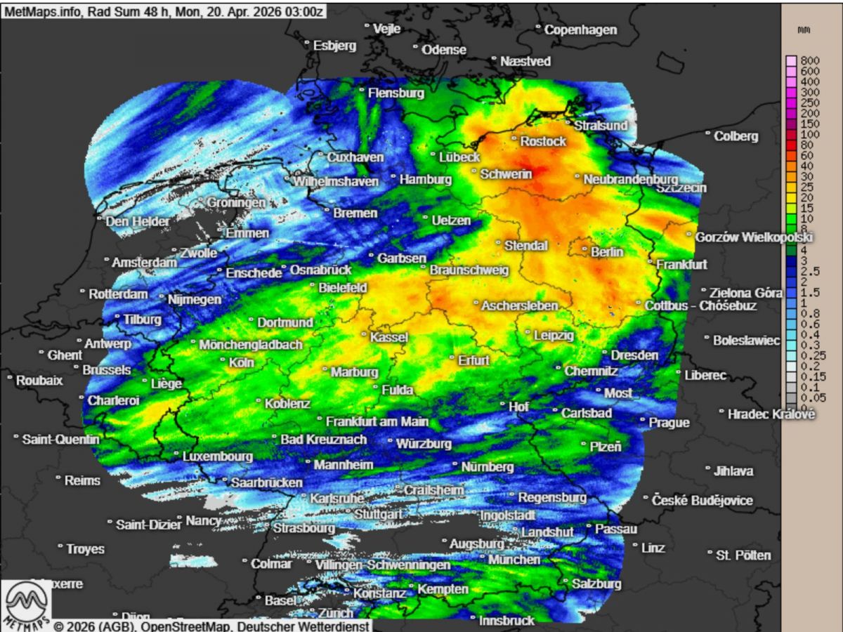 48-Stunden-Regenmengen bis 20.04.2026 (03:00 Uhr)