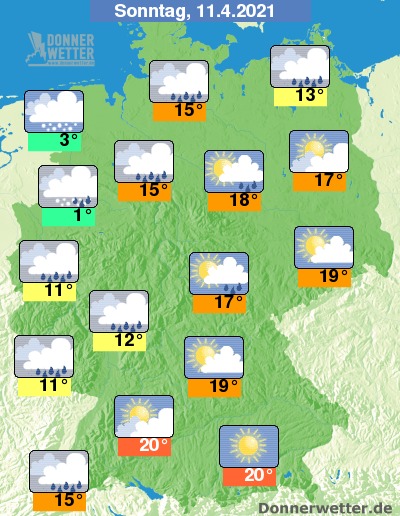 Als Wettergewinner gehen am Sonntag eindeutig der Süden und Osten des Landes hervort: In Teilen Sachsens sowie im südlichen Bayern und Baden-Württemberg gibt es Frühlingsgefühle bei einem Wechsel aus Sonne und lockeren Wolken, dazu Temperaturen teils um 20 Grad.