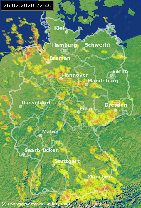 Radarbild von Mittwoch, 26.02.2020 um 22.40 Uhr