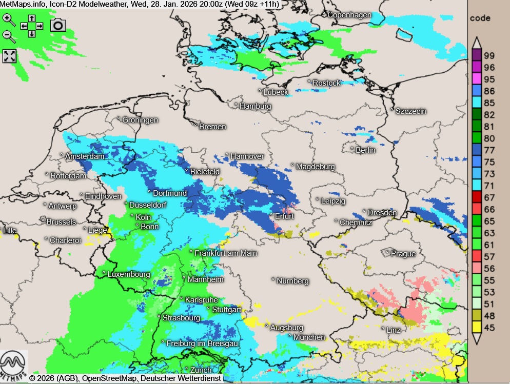 Luftmassengrenze: Weitere Schneefälle in der Nacht.