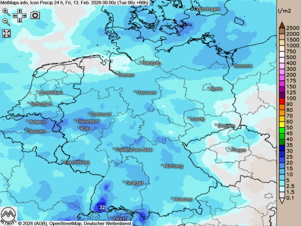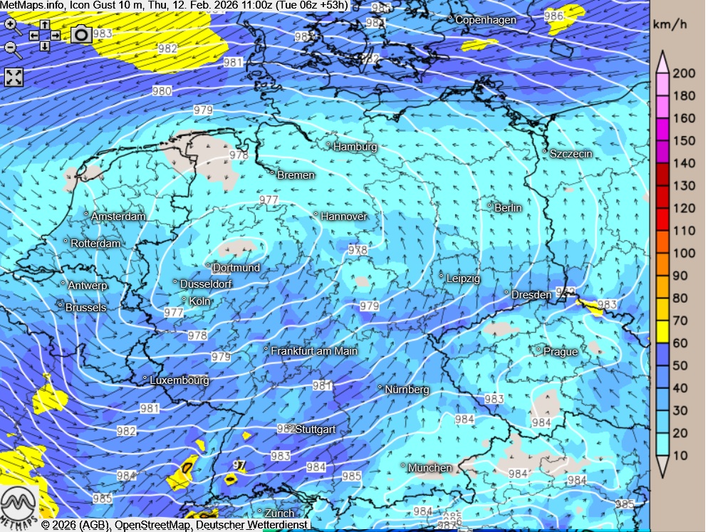 Die Prognosekarten für Weiberfastnacht (11:00 Uhr) nach ICON: