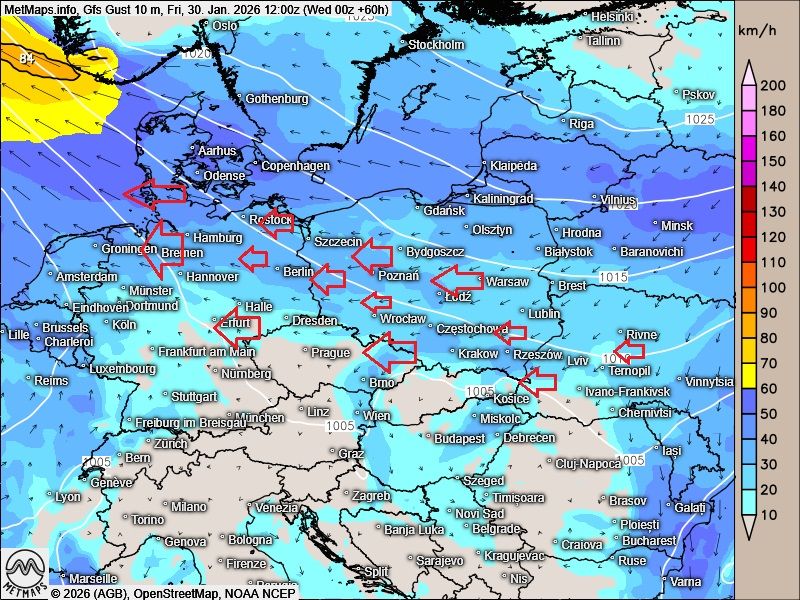 Strömungskarte Freitag (1500 m Höhe) für Freitag.