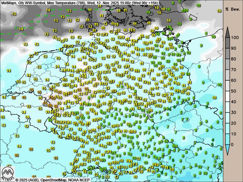Die sehr milde Wetterphase erreicht am Donnerstag mit Höchsttemperaturen von regional fast 20 Grad ihren Höhepunkt. Mit hoher Wahrscheinlichkeit liegen wir verbreitet bei Werten von 17 bis 19 Grad.