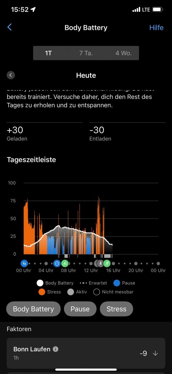 Mit dabei: meine aufgezeichnete Laufstrecke – und ein kleiner Hinweis darauf, wie viel Energie so ein sportliches Wochenende kostet!