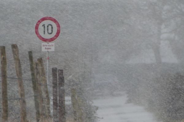 Das Tief  "Doreen" zieht in den nächsten Stunden von Westen heran und hat Sturm und Schnee im Gepäck: Ab einer Höhenlage von ca. 300 m fallen in den Mittelgebirgen zum Teil 10-15 cm neuer Schnee, der mitunter auch verweht. In der Nacht auf Sonntag kann es daher zu Einschränkungen im Verkehr kommen, besonders auf Strecken durch die Mittelgebirge.