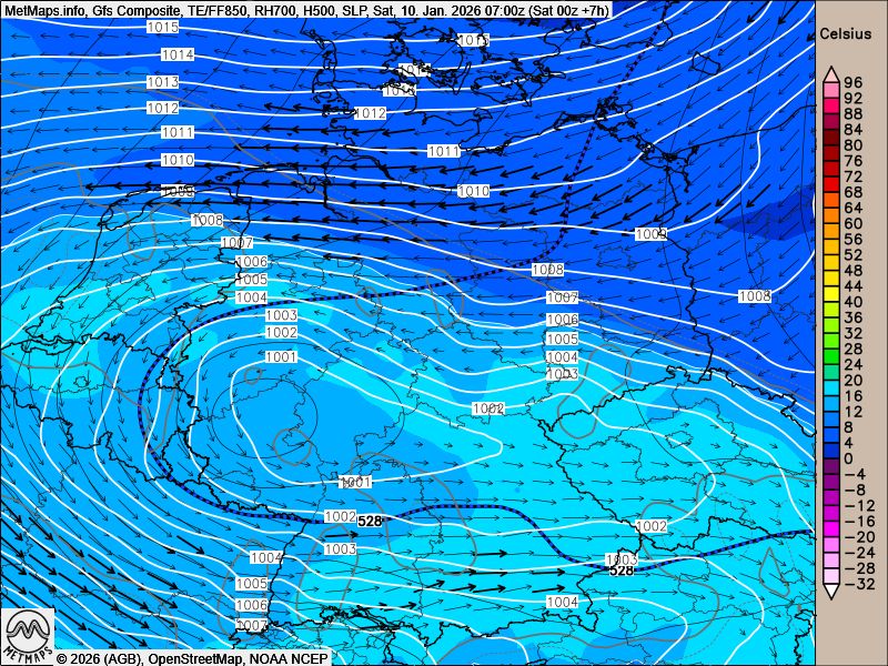 Der Luftdruckverlauf mit "Elli" von der donnerwetter.de-Wetterstation in Bonn, die aktuelle Unwetterwarnlage, die Strömungskarte für Samstag (07:00 Uhr) sowie die die Wetterkarte für Samstagnachmittag nach GFS: