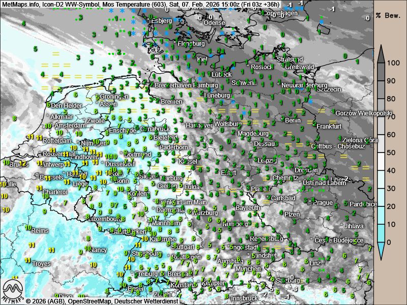 Deutlich freundlicher präsentiert sich das Wetter am morgigen Tag im Westen und Südwesten. In Städten wie Freiburg, Karlsruhe sowie im Rheinland mit Bonn und Köln werden frühlingshafte Temperaturen von 10 bis 12 Grad Celsius erwartet. Regional zeigt sich dabei auch die Sonne.