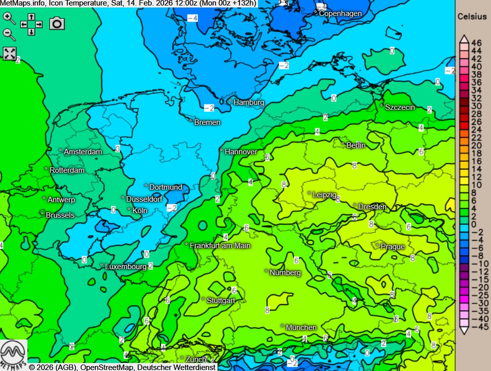 Lufttemperaturen 14.02.2026, 12:00 Uhr