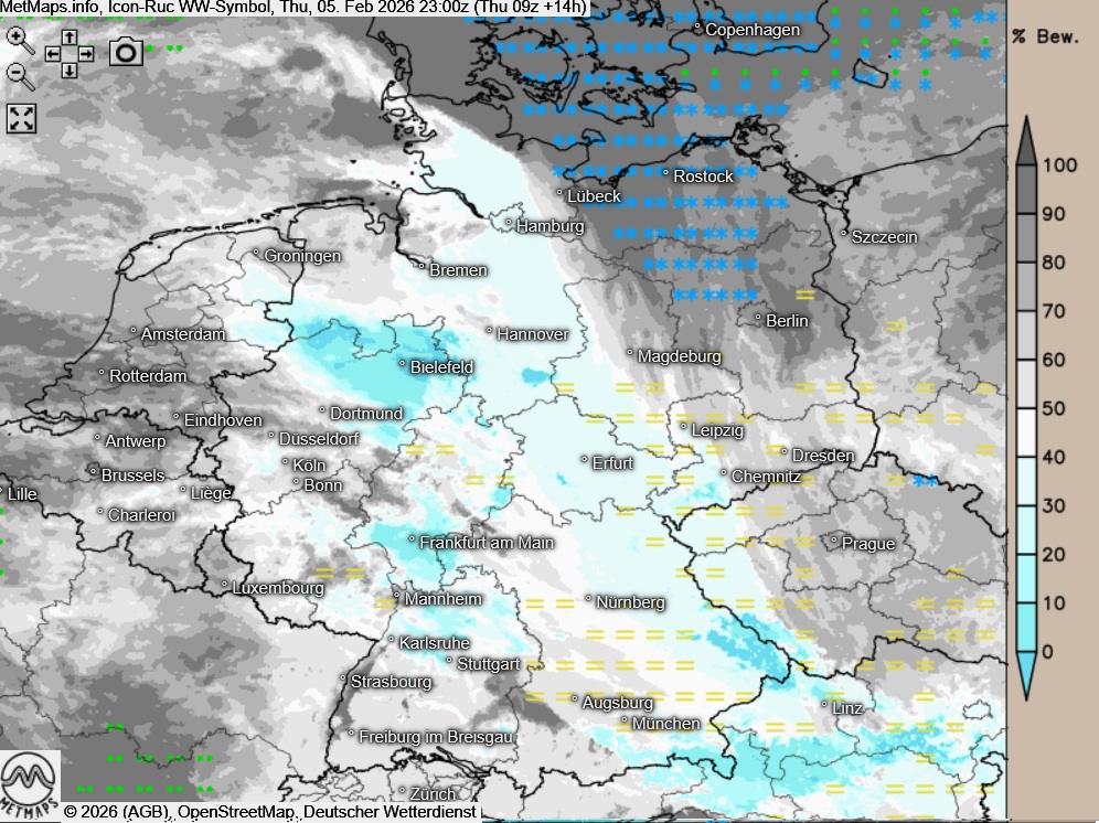 Die Wetterkarten nach ICON-RUC für 16:00, 20:00 und 23:00 Uhr: