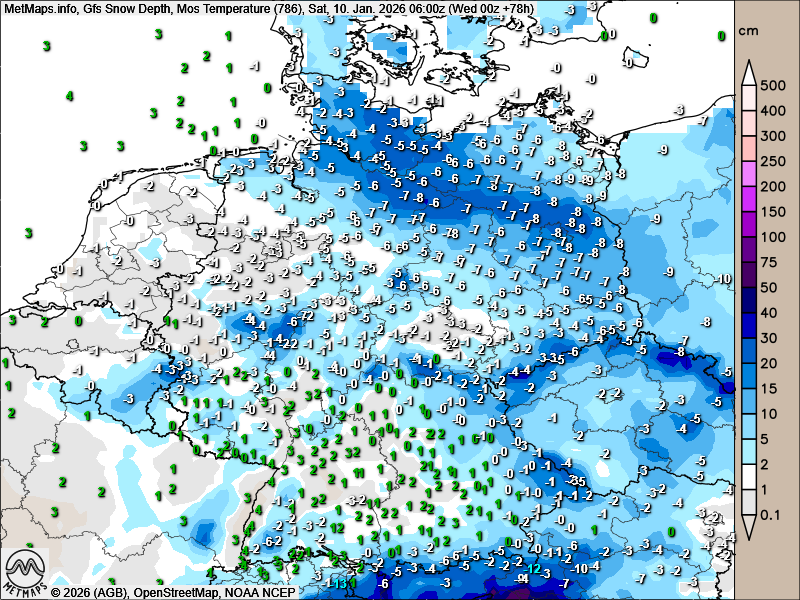 Am Wochenende folgt zudem extreme Kälte mit Tiefsttemperaturen von bis zu −15 bis −17 °C am Montagmorgen.