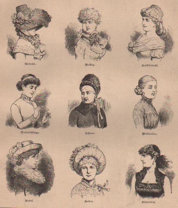 Die "Illustrirte Zeitung", die im Jahr 1883 das erste gedruckte Foto veröffentlichte, gab ihrer Leserschaft daher Tipps, wie die Damenwelt ihre Haar- und Huttracht mit dem Wetter verschmelzen lassen kann.